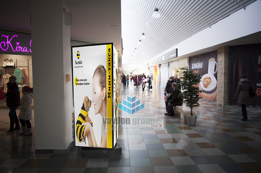 2)Оптимус (25.000р)- пилларс с подсветкой, основа на которую крепится рекламный носитель поликарбонат. В качестве носителя используется плёнка оракл ( можно клеить, можно просто крепить в крепёж-профиль), так же можно использовать светопроводящую бумагу формата ситилайт.