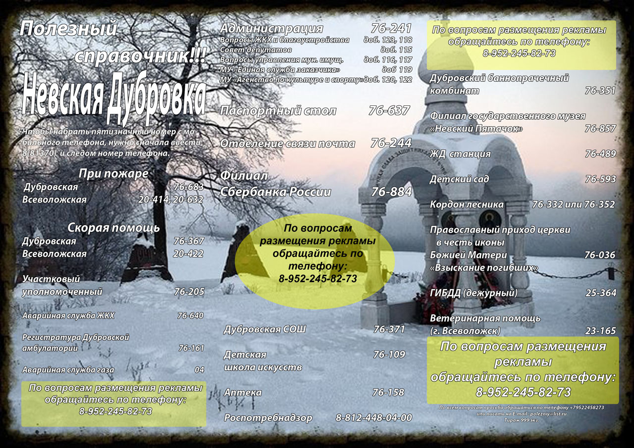 9. Слово редакции лишнее. Можно убрать его или поменять фразу так чтобы было понятно, что по этому телефону можно звонить и по вопросам рекламы и по вопросам внесения изменений в номерах - на случай если кто-то заметит ошибку или номер телефона поменяется.