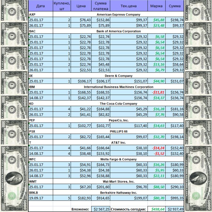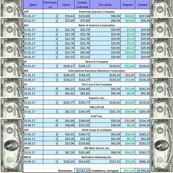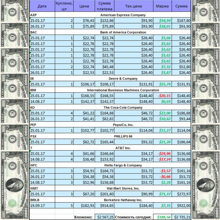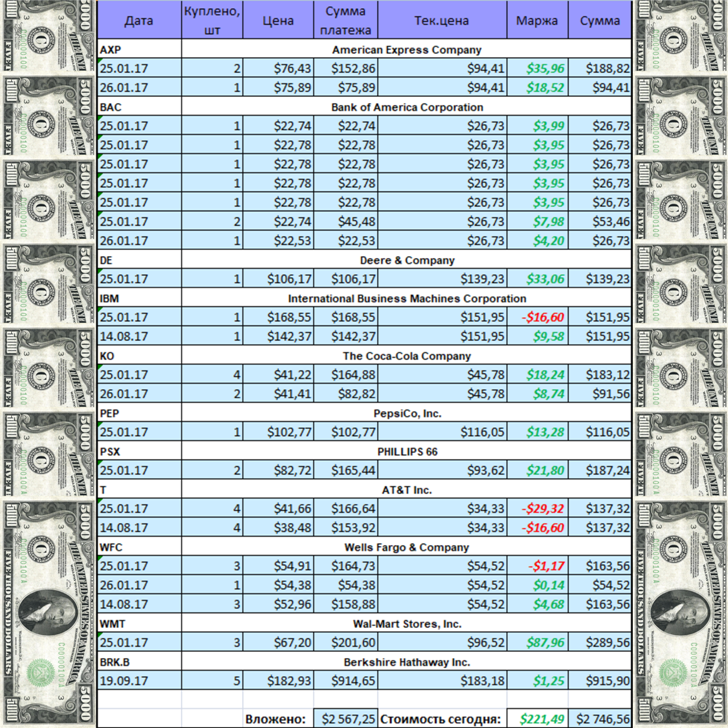 Вот состояние на сегодня моего портфеля акций американских компаний: