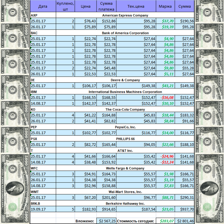 Портфельчик за прошедшую неделю порадовал ростом и прирос на 32,93$.