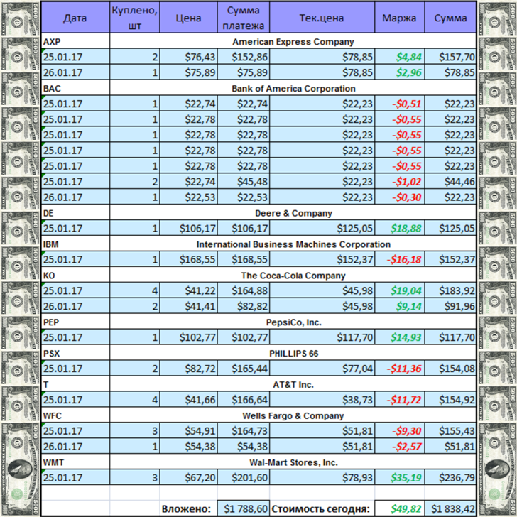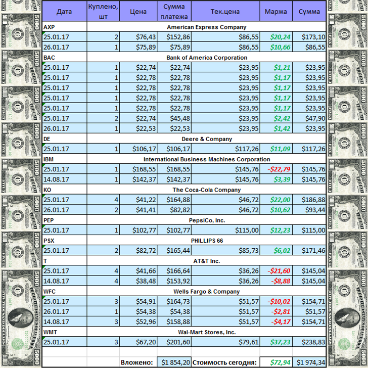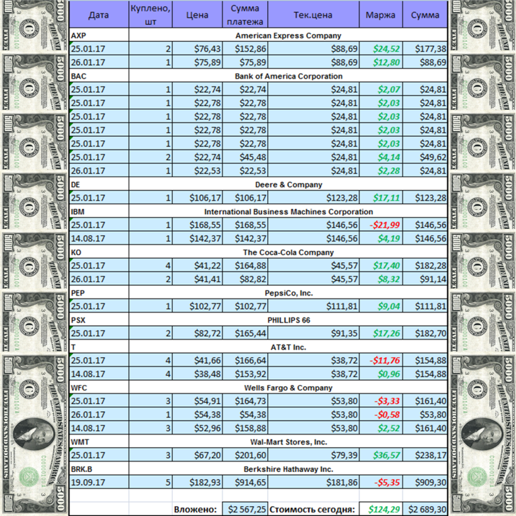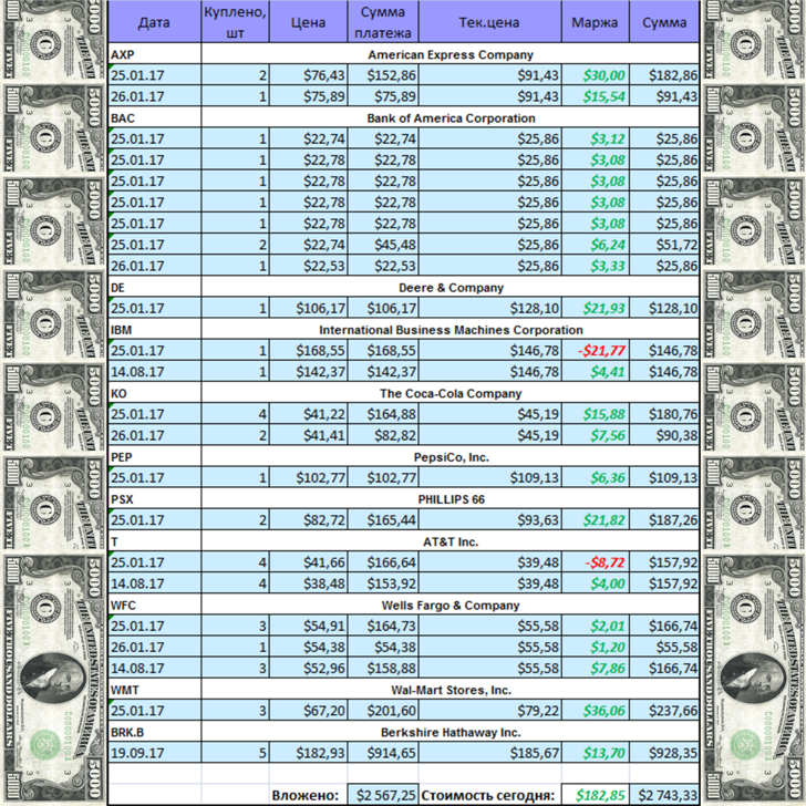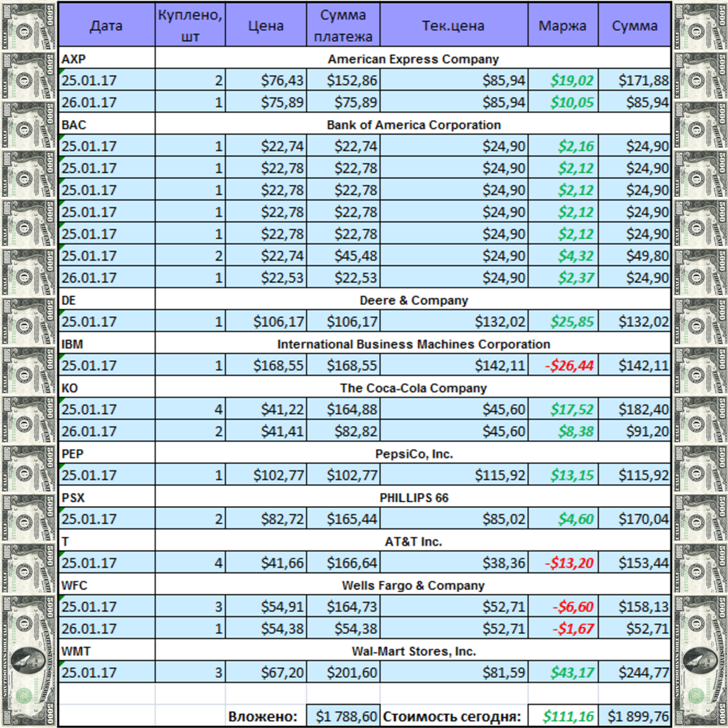 Я повторюсь, что портфельчик составлял из акций, входящих в портфель Уоррена Баффета.