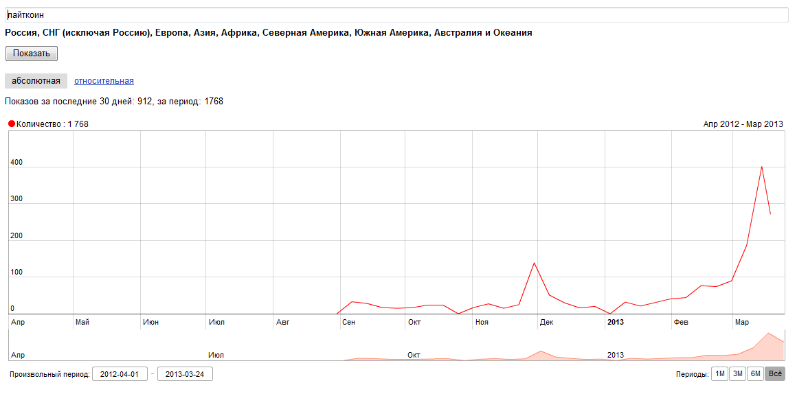 Курс валют и интерес к ним в последнее время растет быстрыми темпами. А информации в интернете мало. Ниша свободна. Вордстат показывает 900 запросов "лайткоин" за месяц, а график роста количества запросов выглядит очень интересно. По запросу "лайткоин" сайт dohod-s-nulya.ru в яндексе на 15 месте при том что на сайте нет ни одной страницы с заголовком содержащим это слово.