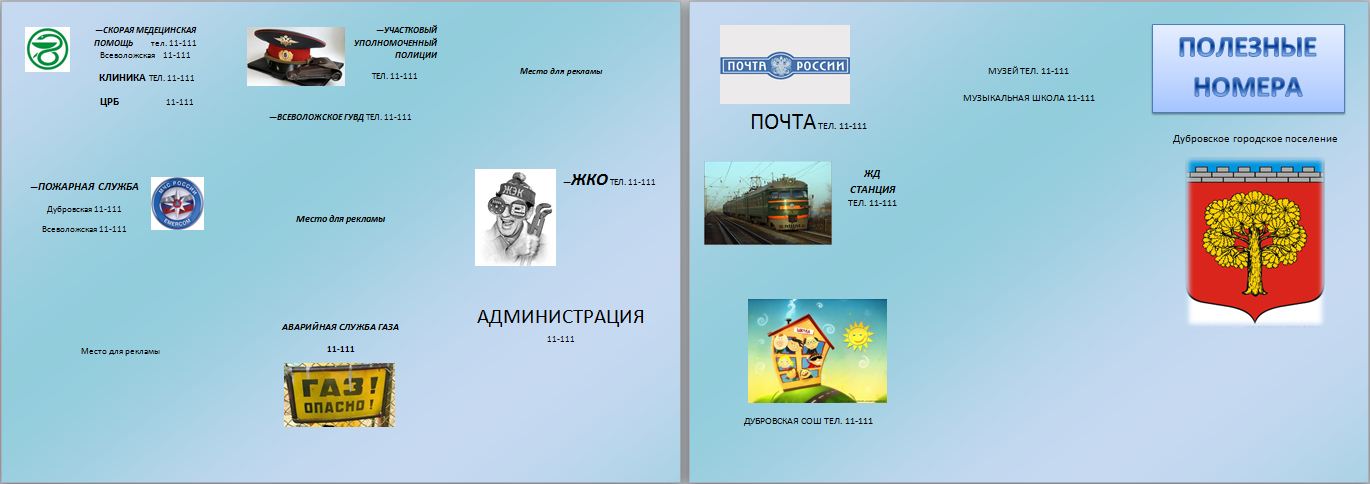 Перед тем как отправлять на печать, надо проверить написание текстов. Лучше если это сделает другой человек. Или можете здесь на форуме выкладывать. В образце есть небольшие опечатки и ошибки. Номера для проводных телефонов можно еще продублировать номерами для сотовых. Например, номер службы газа 04 на мобильном не набирается. Телефоны можно размещать с двух сторон листа.