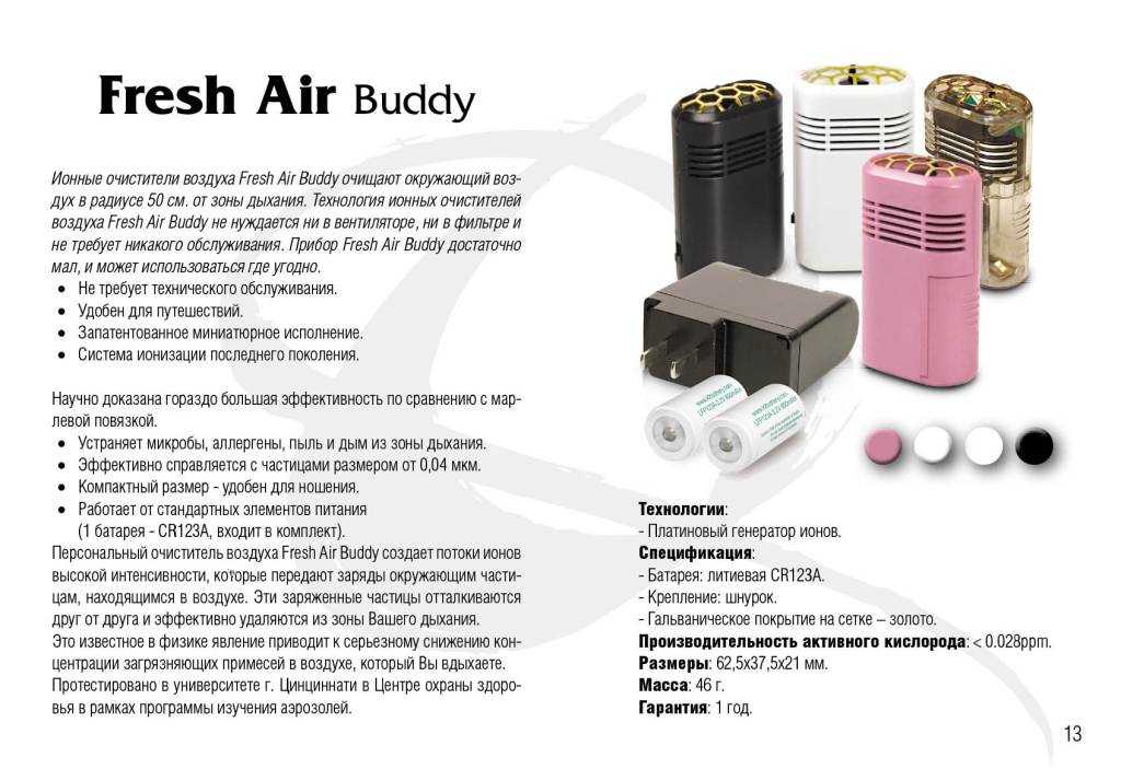 Весна - пора пробуждения, радости, цветения растений и цветов, но многих людей это не радует из-за аллергии. Ещё большее количество людей страдает от аллергии на животных или различные запахи, а многие опасаются за своё здоровье ведь ни для кого не секрет, что "подхватить" вирус в общественном месте гораздо проще. Не заменим этот прибор и для беременных женщин, ведь в этом радостном положении многие запахи раздражают и болеть нельзя ни в коем случае! Вот тут и призван помочь прибор из серии Fresh Air. Fresh Air Buddy - это ваш миниатюрный защитник от аллергенов, пыли, дыма и запахов! Fresh Air Buddy - защитник который всегда рядом с вами. Очищает зону вашего дыхания в радиусе 50 см, не требует сложного технического обслуживания и по цене приемлем.