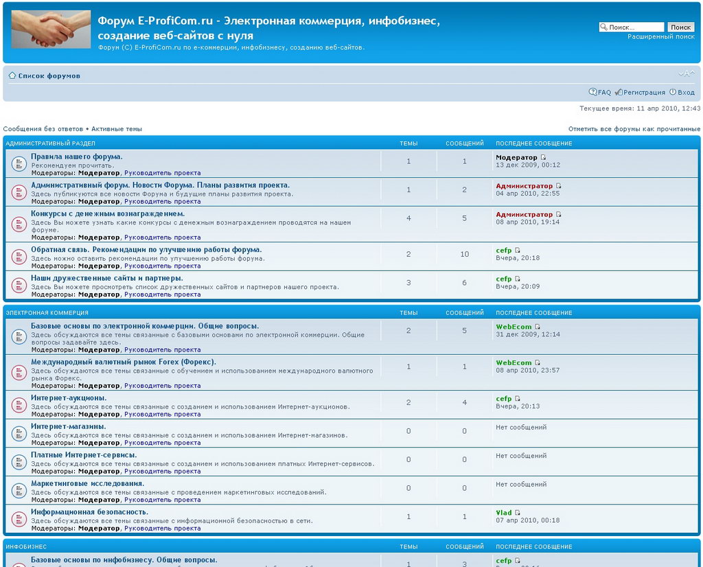 Новый форум посвященный темам: Электронная коммерция, инфобизнес, создание веб-сайтов с нуля.