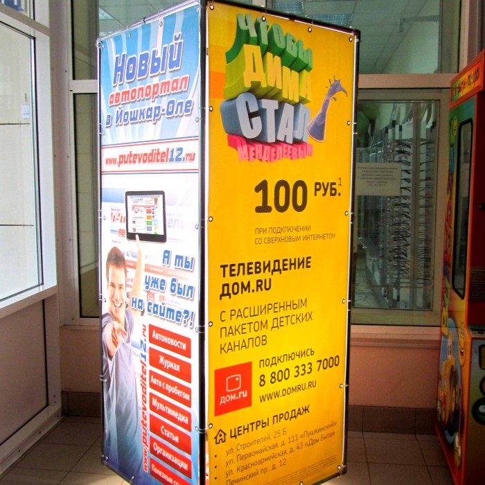 Джейхун писал(а):Ed-monte, у вас только трёхгранные пилларсы? На чём производится рекламная информация - бумага или самоклейка? Сколько стоит купить у вас пилларс?