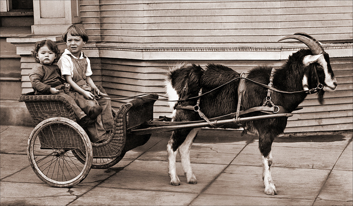 У появилась идея запрячь своего красавца козла в повозку вместо пони и катать детей в парках культуры и отдыха. Идея возникла после просмотра фотографий этих животных запряженных в двуколки и повозки, раньше козлов часто использовали в упряжки как альтернативу лошади. Смотрится необычно, колоритно. Лошадьми и пони уже никого не удивишь, а вот козёл в упряжке - это привлекает внимание.