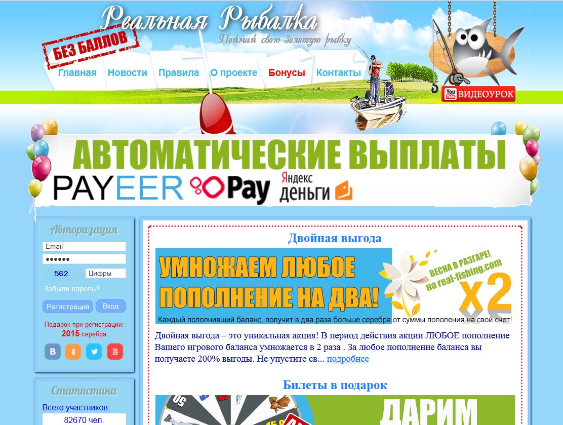 Итак, сначала переходим на САЙТ ИГРЫ - real-fishing точка com/?i=20635 и проходим процесс регистрации. Он несложный и каждый сможет с этим справиться. На сайте игры в правом верхнем углу имеется ссылка, ведущая на видеоурок по регистрации.