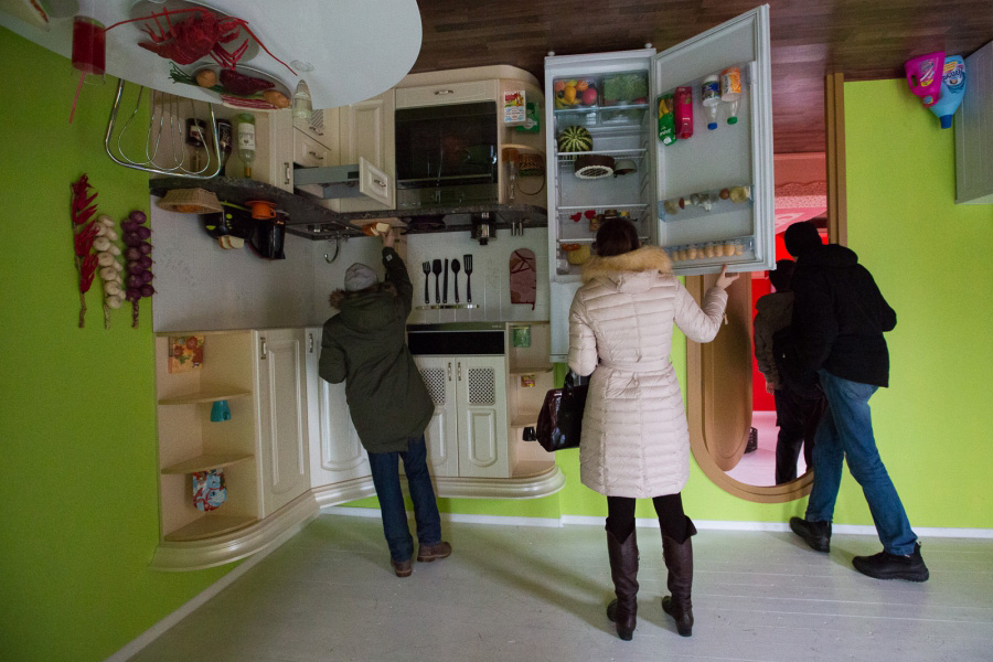 Суть: Люди разных возрастов приходят туда, для того что бы по фотографироваться и снять видео, после чего они выкладывают этот материал в социальные сети. Так как дом наклонен в двух плоскостях на 9° вестибулярный аппарат начинает сходить с сума, что вызывает бурю положительных эмоций)))