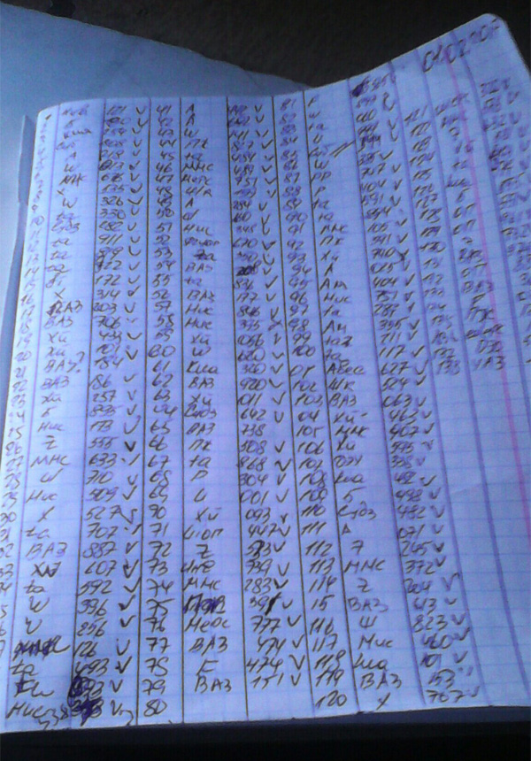 Журнал учета транспортных средств. В среднем на территории стоит 135 машин.